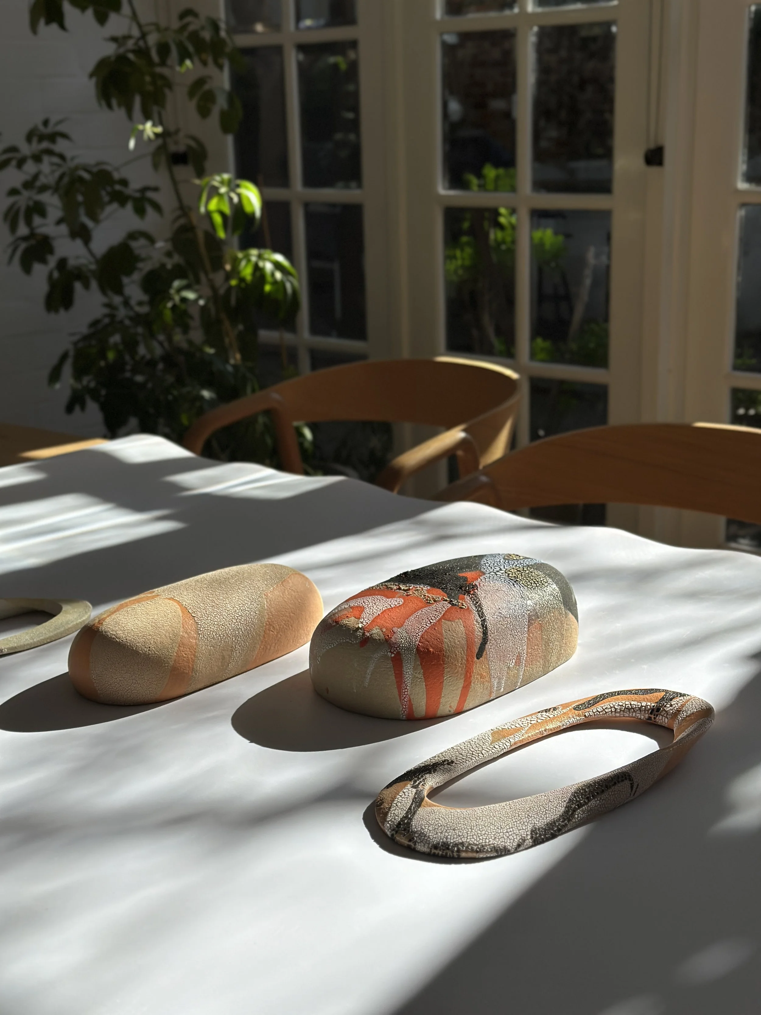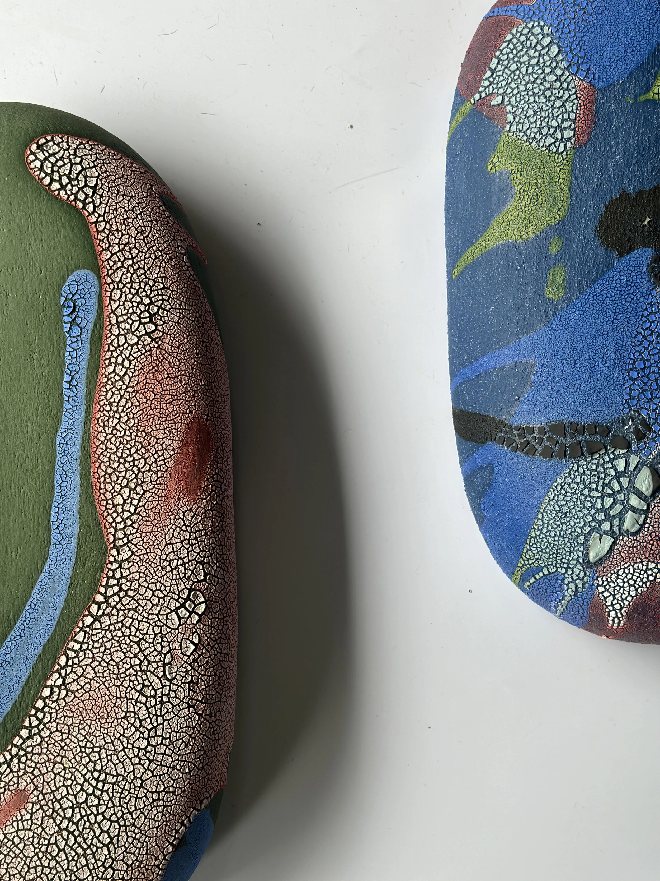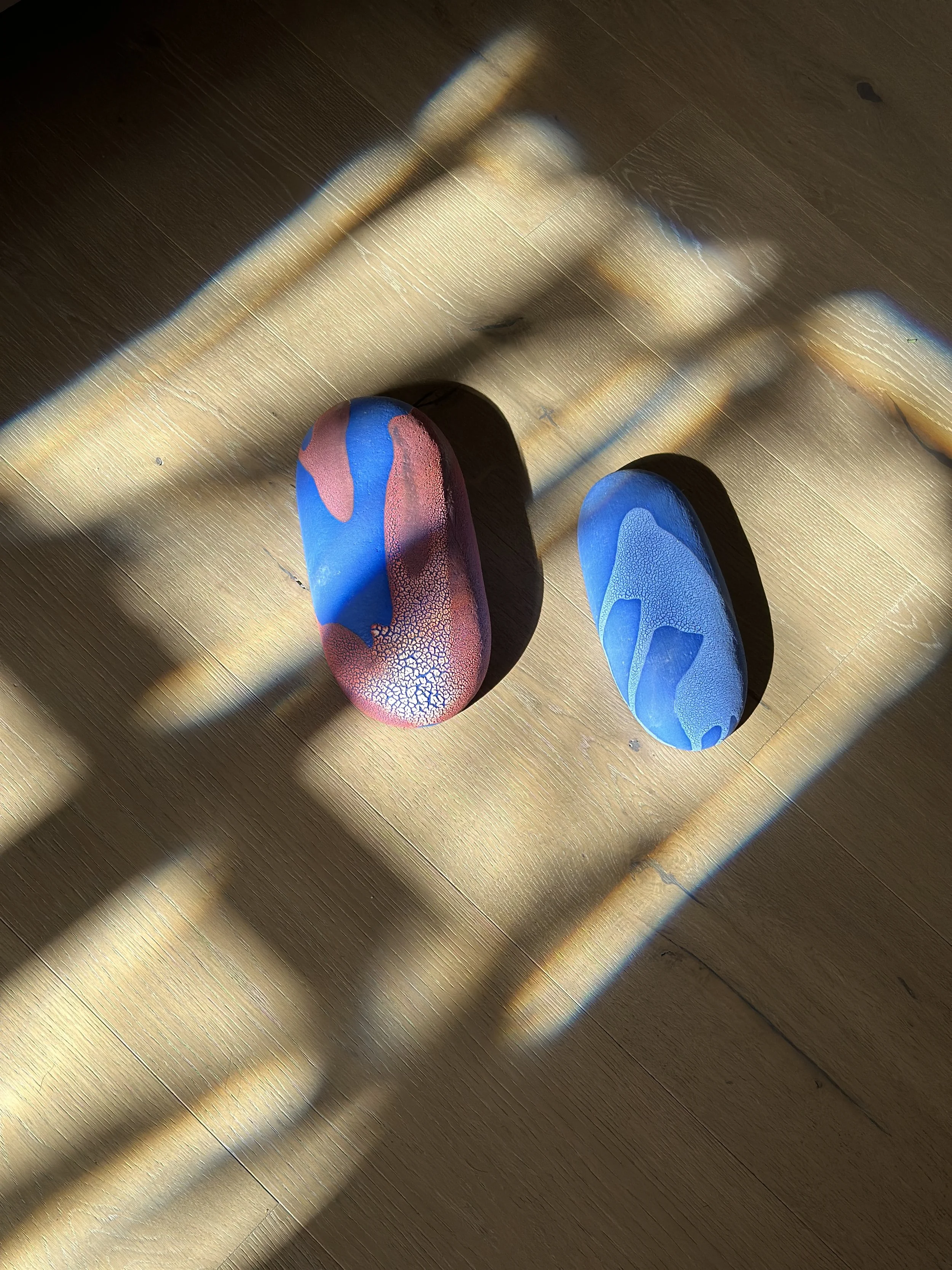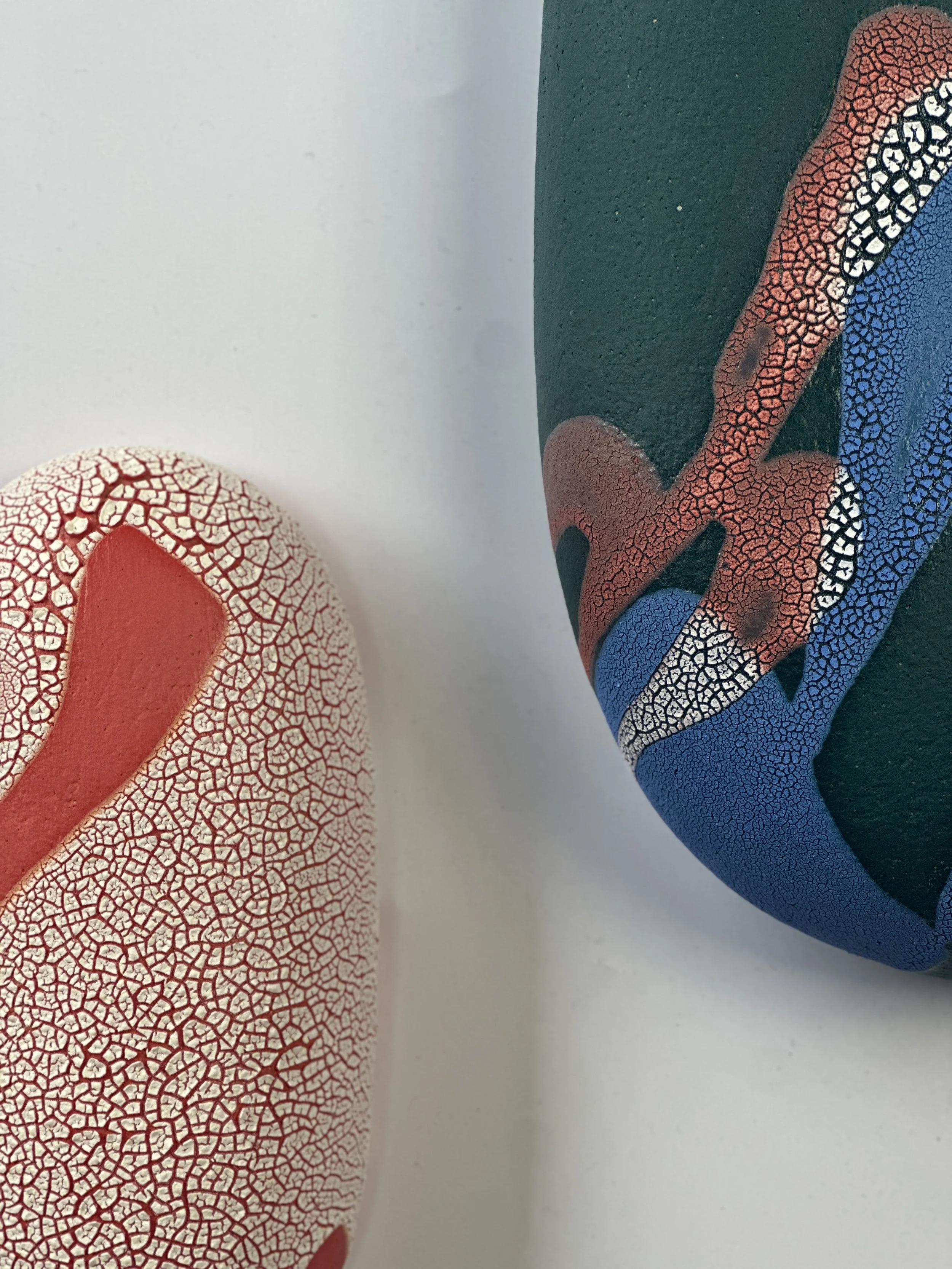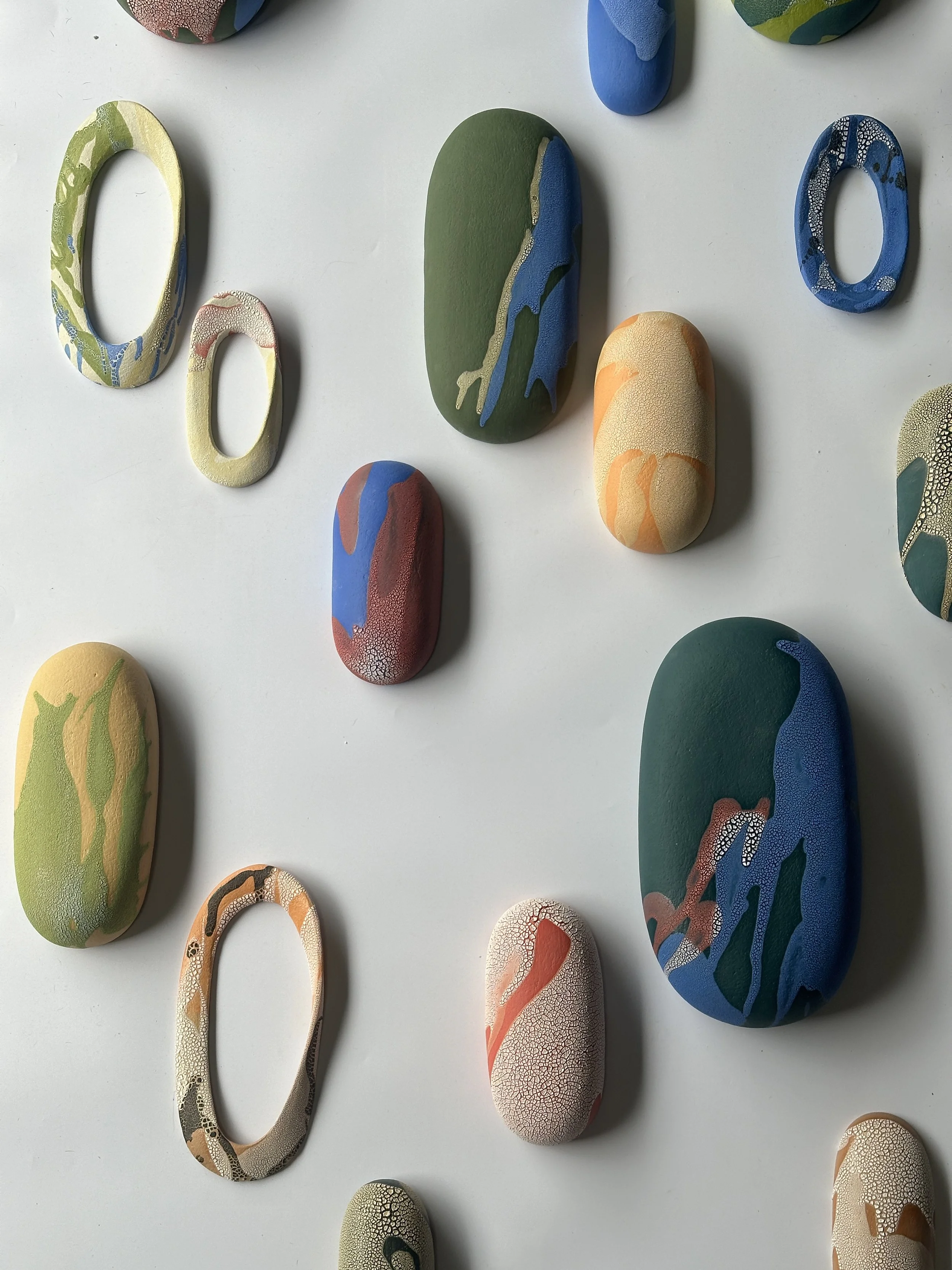 Inspired by the movement of water and the beauty of rain, Rain of Colours is a collaborative wall art project with Caroline Valenti. The pieces' shapes are drawn from the concept of water drops falling from the sky, merging to form rain. As these drops descend, they capture fleeting glimpses of the landscapes below, bringing together vibrant colors and intricate textures that represent the earth from this unique perspective.